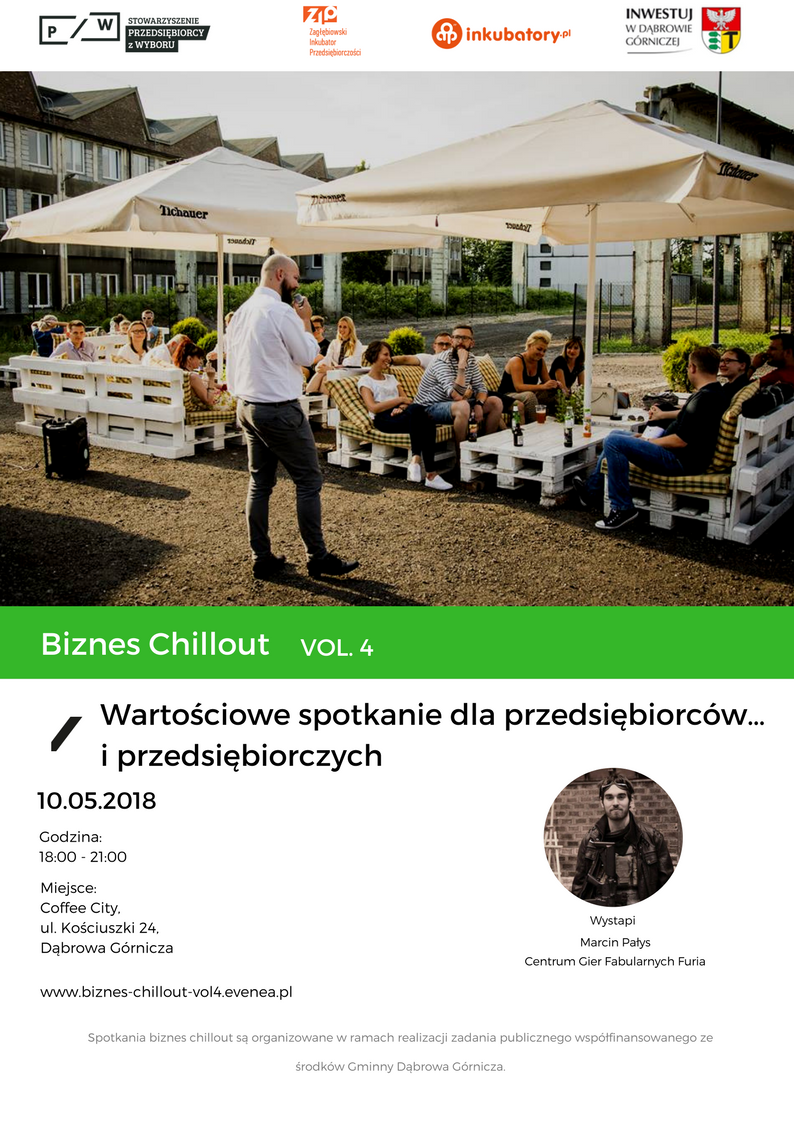 Spotkania biznes chillout są organizowane w ramach realizacji zadania publicznego współfinansowanego ze środków Gminny Dąbrowa Górnicza. Dziękujemy!