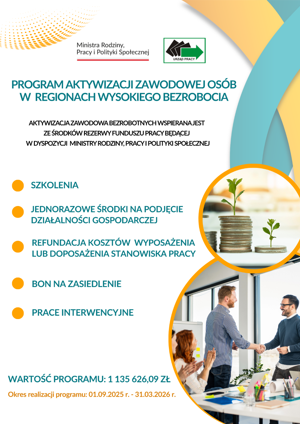 Rozpoczynamy realizację Programu Aktywizacji Zawodowej Osób w Regionach Wysokiego Bezrobocia, finansowanego ze środków rezerwy Funduszu Pracy będącej w dyspozycji Ministry Rodziny, Pracy i Polityki Społecznej.