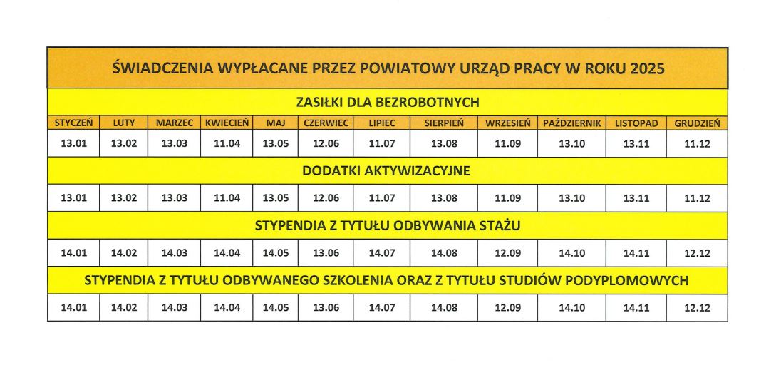Grafik wypłaty świadczeń pieniężnych w 2025