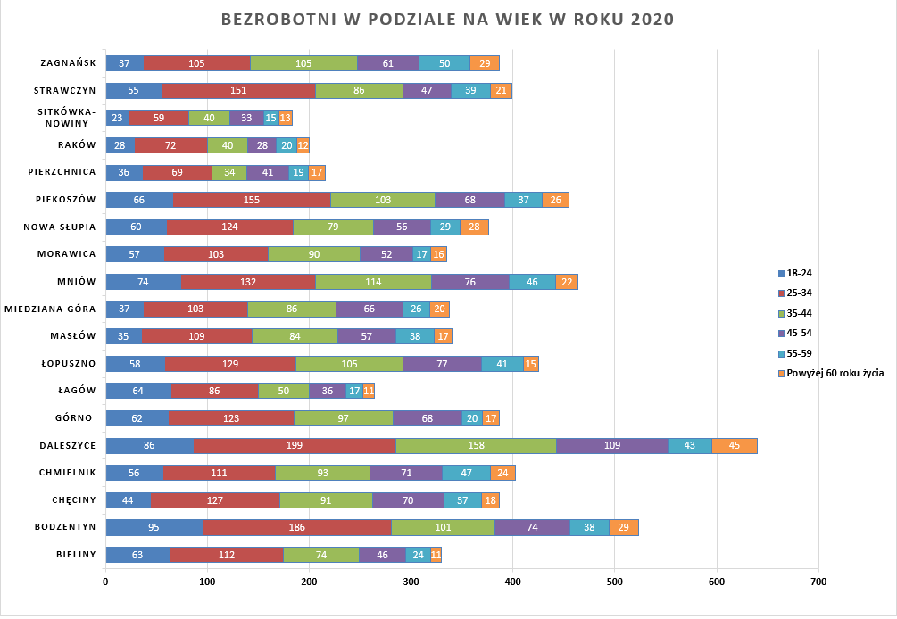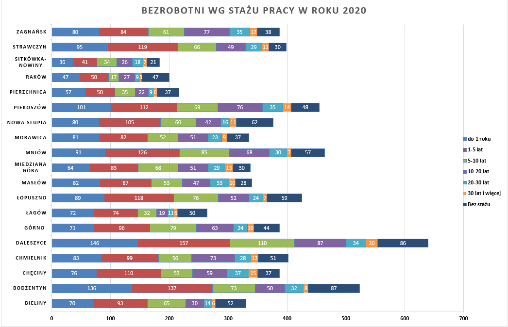 Statystyki - Stan bezrobocia w gminach 2020 - Powiatowy Urząd Pracy w Kielcach