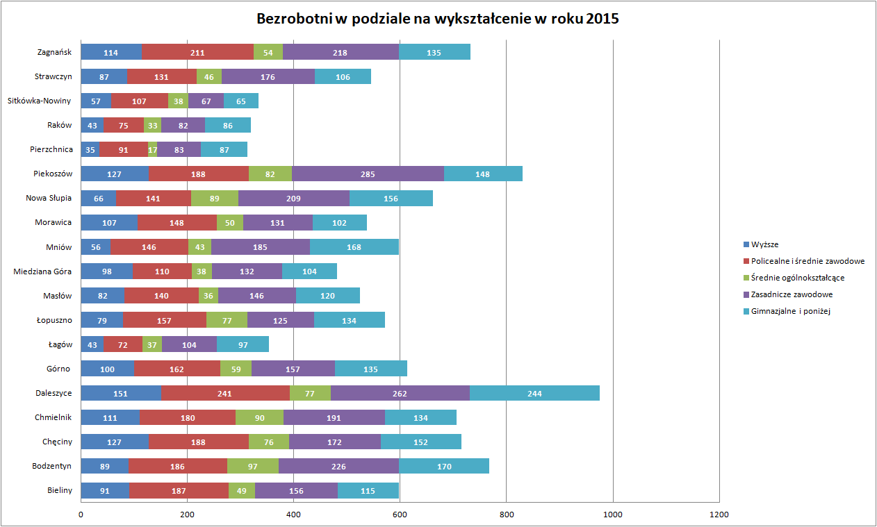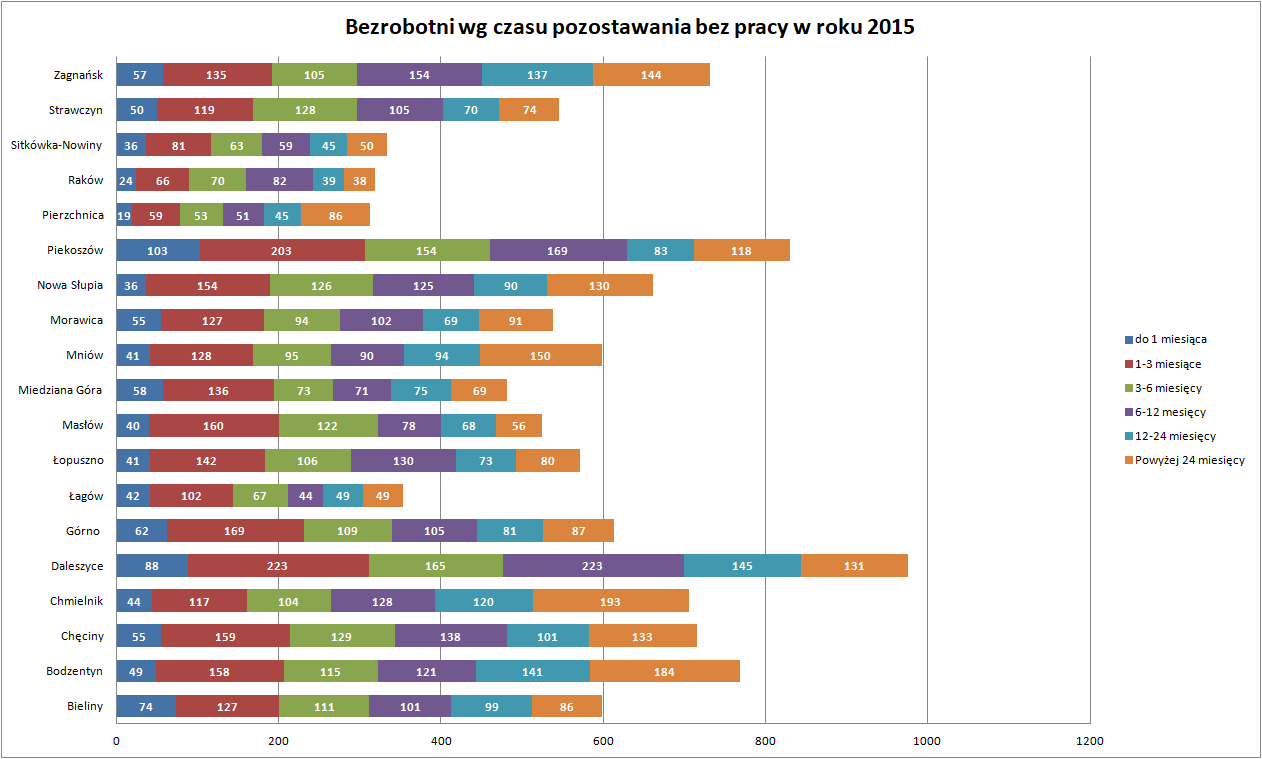 Statystyki - Stan bezrobocia w gminach 2015 - Powiatowy Urząd Pracy w Kielcach