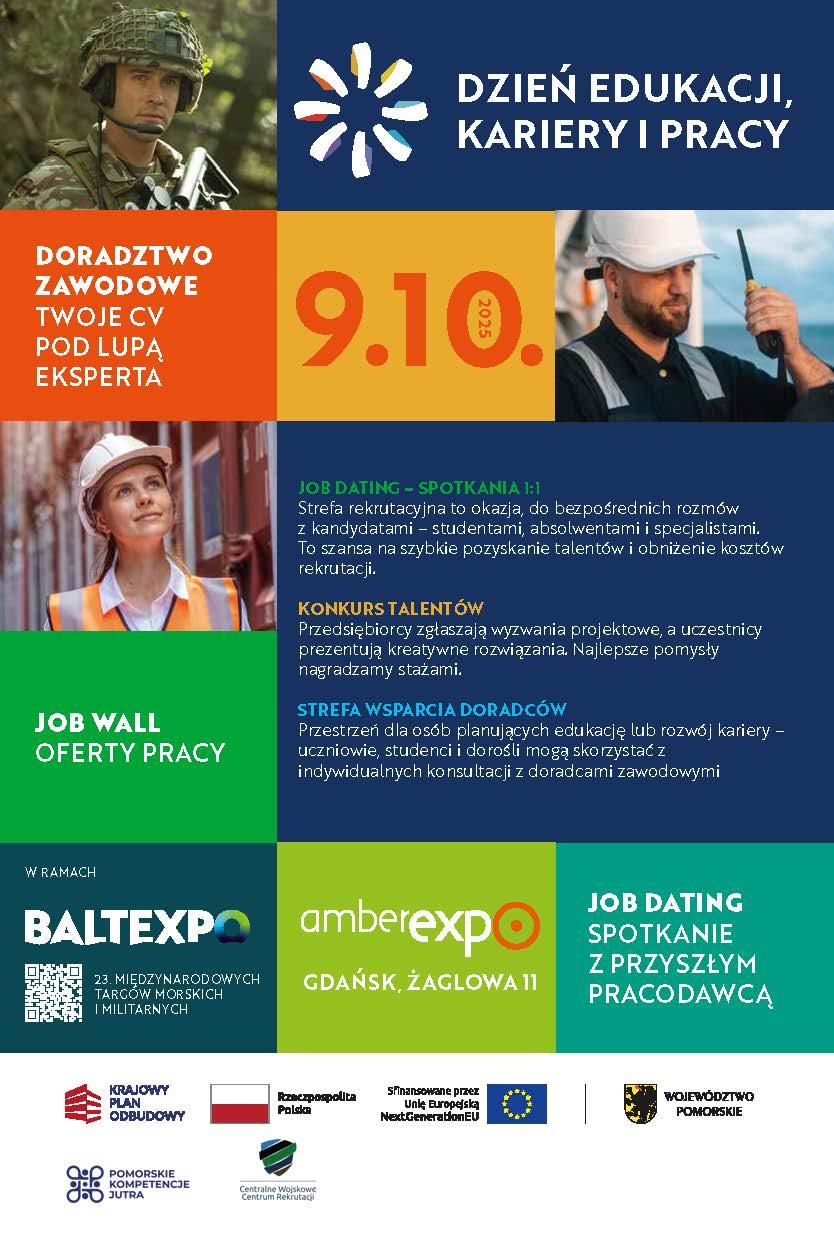 W imieniu organizatorów serdecznie zapraszamy do udziału w Dniu Edukacji, Kariery i Pracy, który odbędzie się 9 października w godz. 10:00-16:00 w AmberExpo przy ul. Żaglowej 11 w Gdańsku.