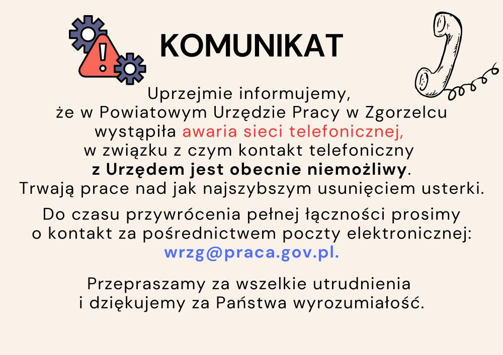 Awaria sieci telefonicznej - Powiatowy Urząd Pracy w Zgorzelcu